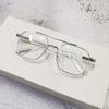 Anti-Blue Glasses Transparent Frame Retro Double Beam Pilot Flat Light Eye Frame Can Be Equipped With Degree Women'S Myopia Glasses