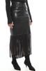 Women's Black Genuine Lambskin Leather Stylish Fringed Skirt Handmade Club Party