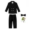 Boys Business Suit Spring Summer 2024 British Plaid Flower Child Wedding Outfits Gray Handsome Kids School Uniform Blazer Set