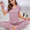 Women's Home Wear Short Sleeve Trousers Pajamas Love Pattern Casual and Comfortable