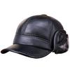 High Quality Leather Fur Hat Winter Outdoor Hat Cold-proof Old Man's Black Brown Leather Earring Bomber Hats