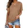 New Solid Color V-neck Short Sleeved Women's T-shirt Fashionable Casual T-shirt