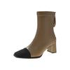 Women Korean Boots Winter High Heels Bow Square Toe Retro Ankle Boots Chunky Heels Dress Shoes Elastic Short Botas De Mujer
