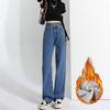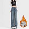 Small Narrow Version Straight Wide-leg Jeans for Women In Autumn and Winter New Style of Hip-covering High Waist Plus Velvet Thickened Casual Jeans