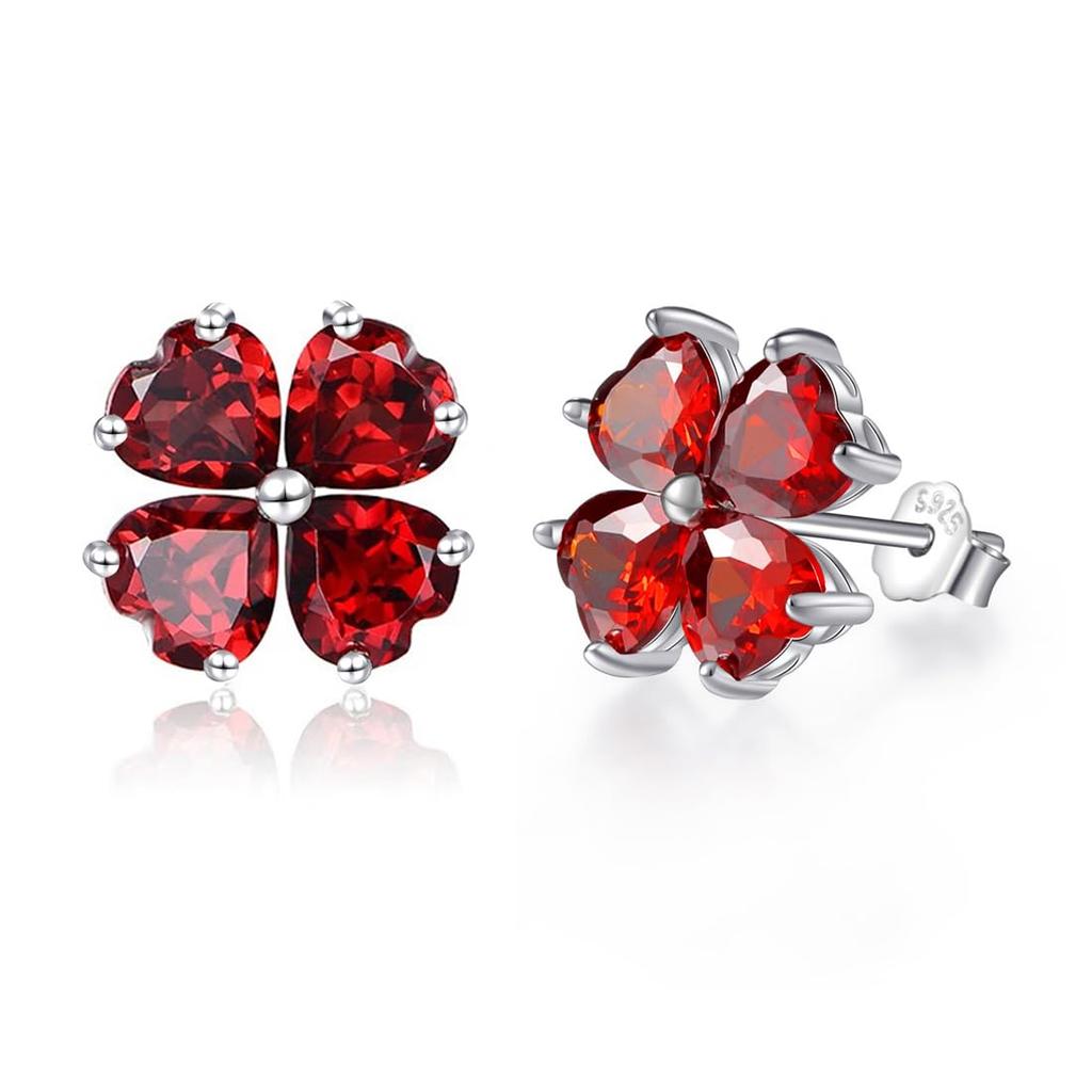 925 Silver Heart Earrings for Finest January Hypoallergenic Four Leaf Entrance Present [JIANGXIN] Women, Birthstone, Garnet, Earrings, Clover,