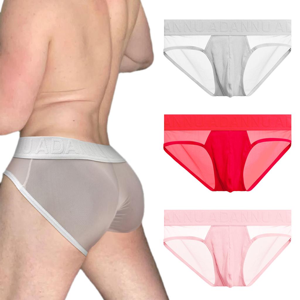 Men's Translucent Low Waist Briefs, Sexy Breathable Sports Fitness Underwear For Men Fashion Solid Color Man Underpants