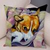 Cute Pet Dog Welsh Corgi Animal Print Cushion Cover Sofa Home Car Pillow
