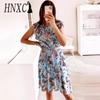 Unique style: Dress with print / Sexual O neck / sleeve of butterflies / Elastic waist / everyday style / beach dress for swing / ruffle