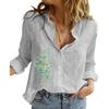 Women Lapel Neck Fashion Long Sleeve Top Cotton Linen Button-up Shirt Ladies Casual Print Blouses