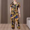 Size: 5XL,Bust:116cm, Shoulder:43cm, Top Length:64cm, Pants Waist:96cm-104cm, Hip:124cm, Pants Length:91cm