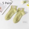 5 Pairs of Female Preppy Green Small Fresh Short Boat Socks