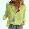 Women Fashion Cotton Linen Shirt Summer&fall Loose Long Sleeve Top Ladies Casual Flower Print Button-up Blouses
