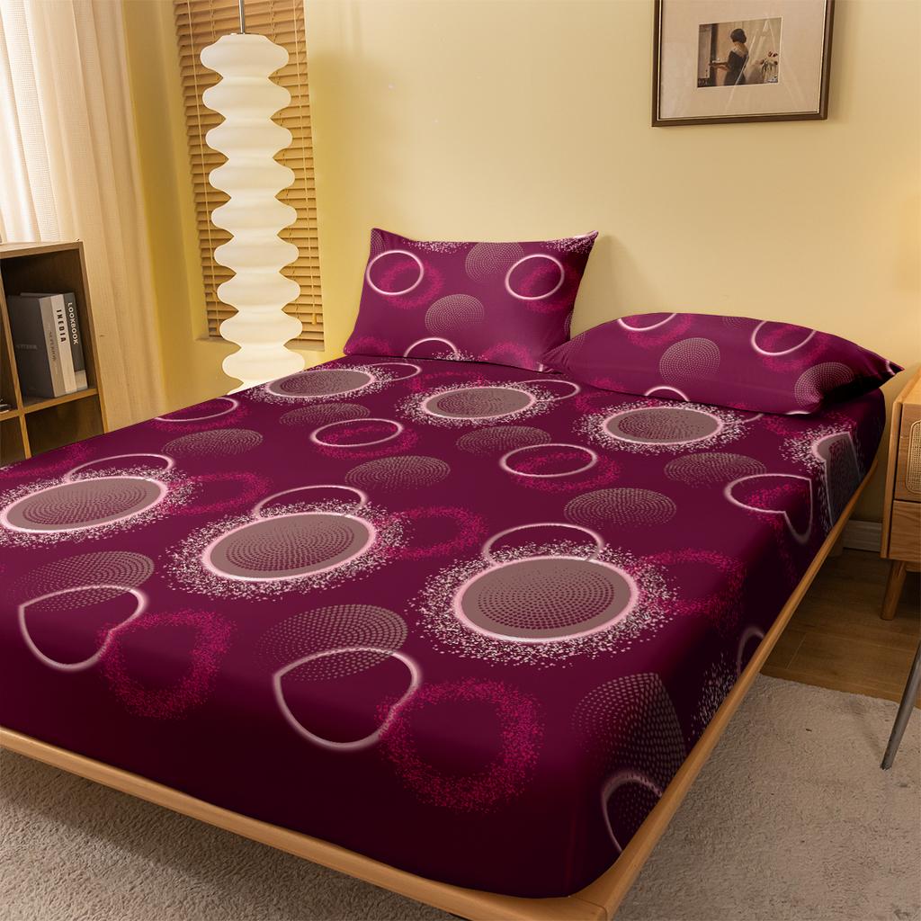 1 Simple Modern Circular Geometry Printed Matte Fitted Sheet, Bedroom Printed Bed Cover, Bedding (Excluding Pillowcases)