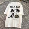 Funny Cat Printed T-shirt for Men and Women The Same Summer China-Chic Five Part Sleeve Cotton Loose Shoulder Sleeve