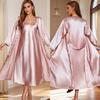 Cozy Women Pajamas Ladies Nightgowns 2pcs Satin Robes Nightdress
