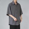 Men's Summer Japanese Casual Loose-Fit Solid Color Drape Lapel Shirt