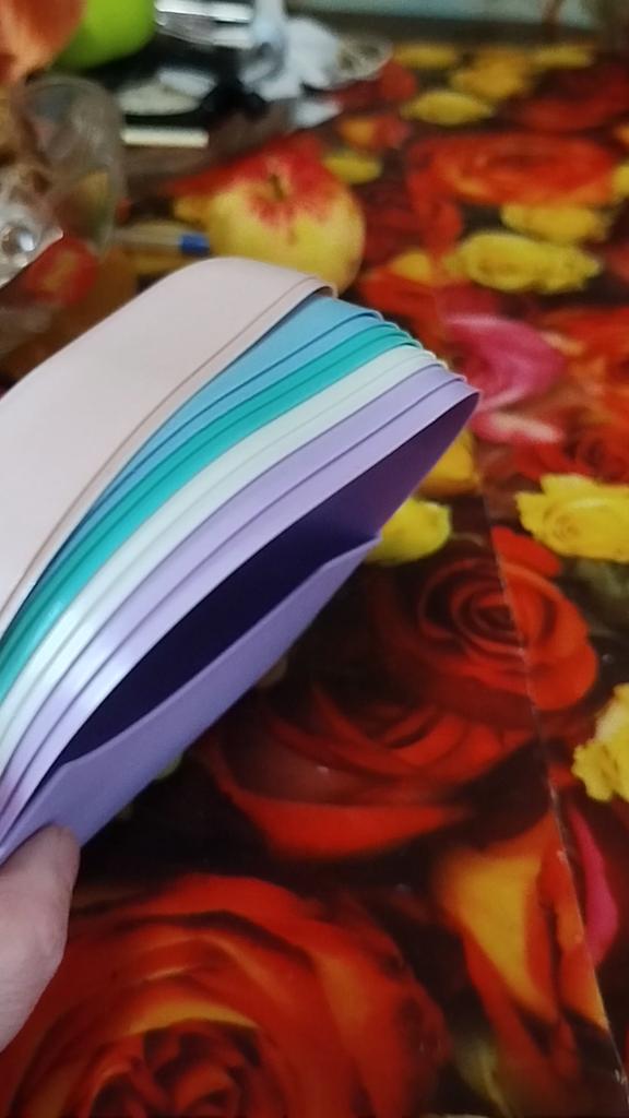 So, the little plates came. There is no smell at all, the colors are beautiful, the plastic is flexible, it bends easily, but....they are small. I admit, maybe I wasn't paying attention to the dimensions. They are good for snacks. Those who will purchase them and pay attention to the size will not regret it.