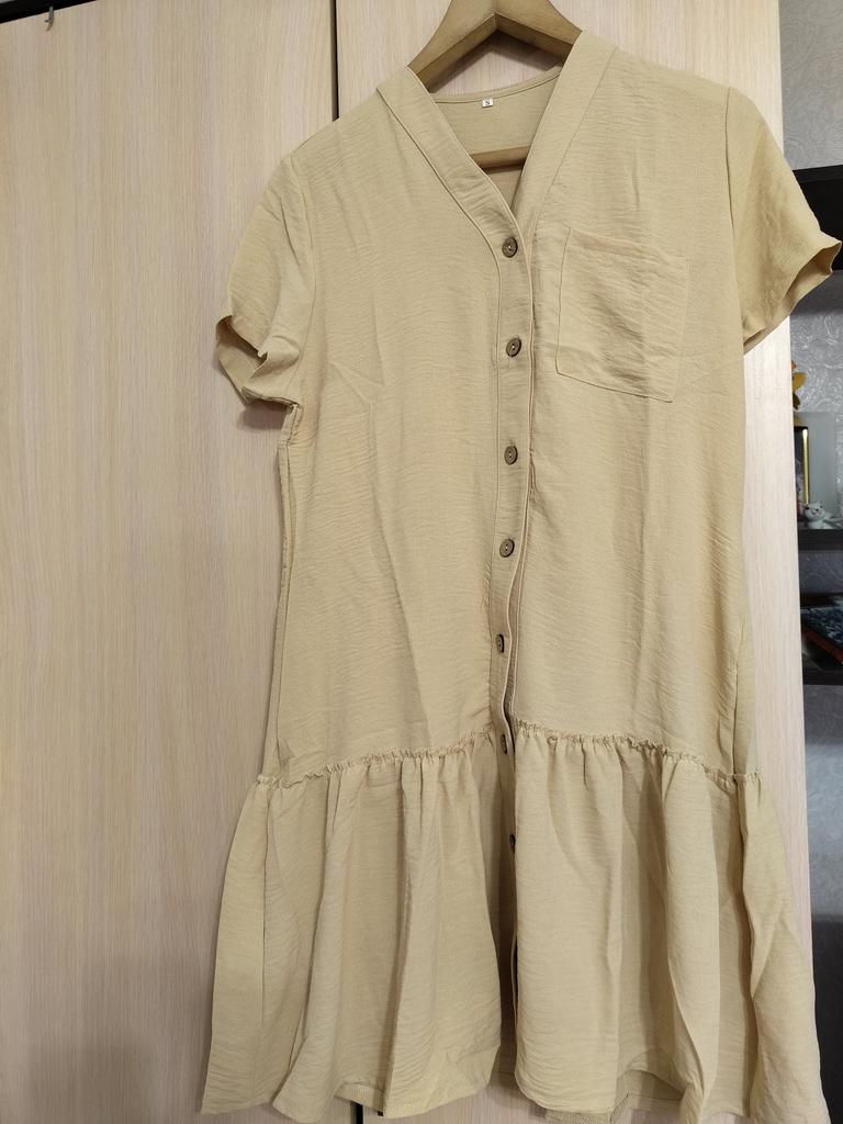 Women Summer Loose Cotton Linen Dress Ruffle Hem Casual Short Sleeve Dresses Cardigan Shirt Dress