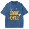 Summer Trend Couple T-shirt Loose Round Neck Short Sleeve GAME OVER Printed American Retro Style Imitation Denim