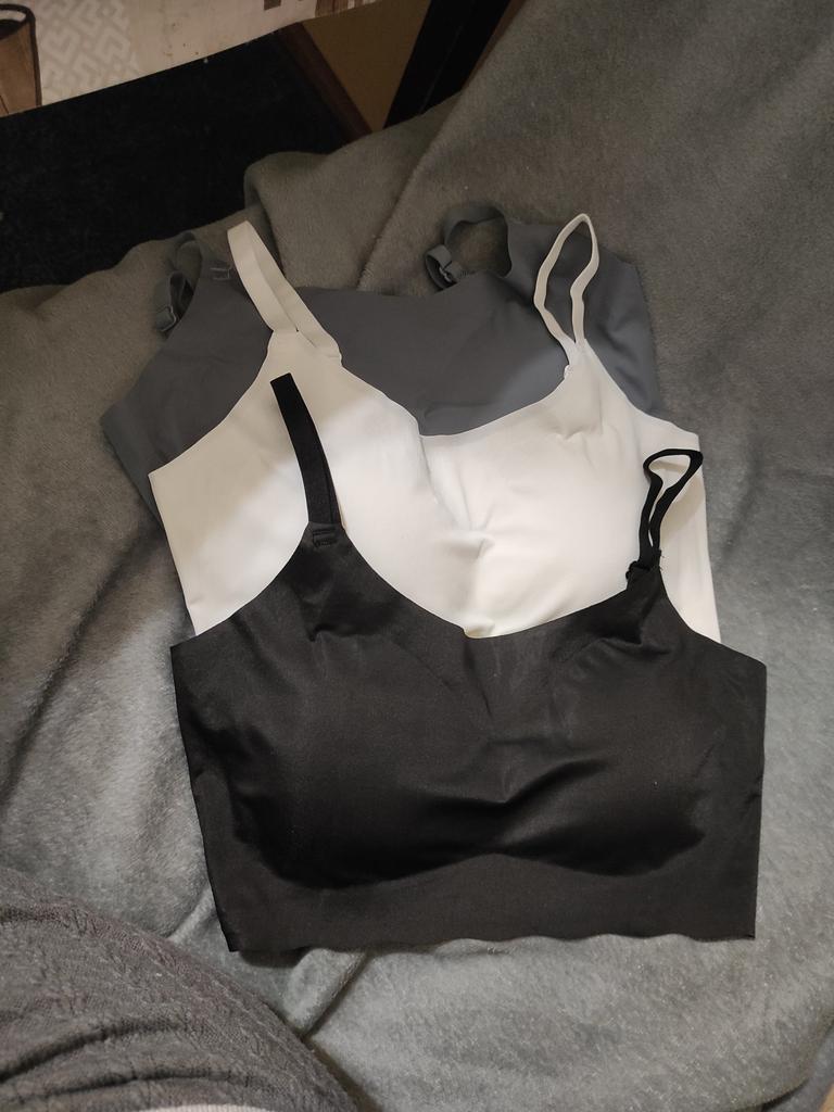Seamless top 🖤 The quality is excellent. The fabric is delicate, very pleasant to the touch. Has removable inserts. Size L is a little tight for my measurements. I have a chest circumference of 90 cm (cup B, underbust circumference 79 cm) Awesome, at an excellent price 👌🏻 I definitely recommend!