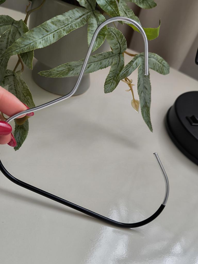 Hook-shaped hanger for organizing caps Well-made, made of strong metal, has a silicone-coated layer. You can hang a lamp on it too. I recommend 🤗
