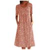 Women Summer Boho Floral Print Dress Round Neck Short Sleeve Pocket Dress