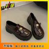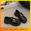Coarse Heel British Style Small Leather Shoes Women's 2025 Winter New Retro Loafer Platform Black French One-pedal Single Shoes
