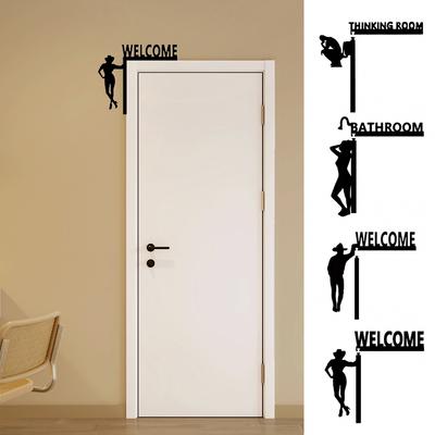 1PC Wall-Mounted Modern Bathroom Door Pendant Home Decor Toilet Door Sign Minimalis Black Silhouette Wood Frame