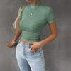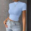 Women's Fashionable Crop Top with a High Neck and Mesh Jacquard Short Sleeved Top