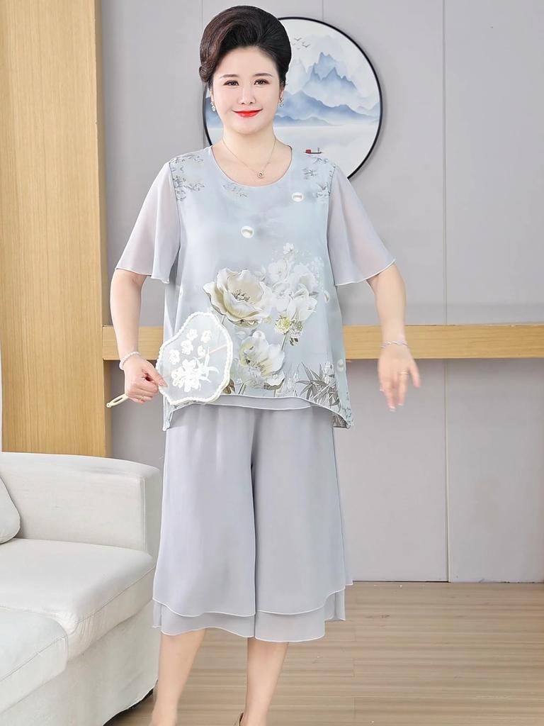 Size: 4XL,Bust:116cm, Shoulder:44cm, Top Length:60cm, Pants Waist:83cm-91cm, Hip:118cm, Pants Length:71cm