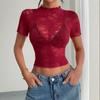 A New Spring and Summer Semi-high Neck Lace and Black Ear-edge Thin Sexy Slimming Top