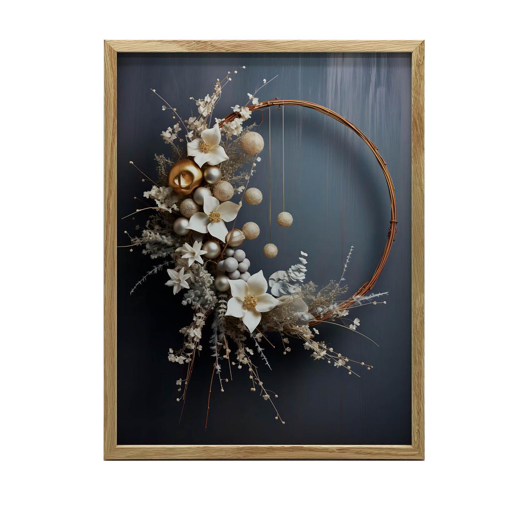 Plakat 'Magiczny Wieniec Bożonarodzeniowy' został wykonany na papierze o gramaturze 230 gsm, co zapewnia mu trwałość i wyrazistość kolorów. Dzięki matowej powierzchni, kolory są głębokie i nasycone. Złota aluminiowa rama dopełnia całość, nadając elegancji i prestiżu.