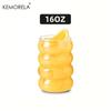 1/4PCS 16OZ Creative Glass Cup Straw Heat-Resistant Wave Cup Beer Juice Ice Coffee Cups Cocktail Fruit Glass Drinkware