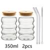 350/480ml With Lid And Straw Set Of 2pcs Heat-resistant Wave Cup Beer Juice Ice Coffee Cups Cocktail Fruit Glass Drinkware