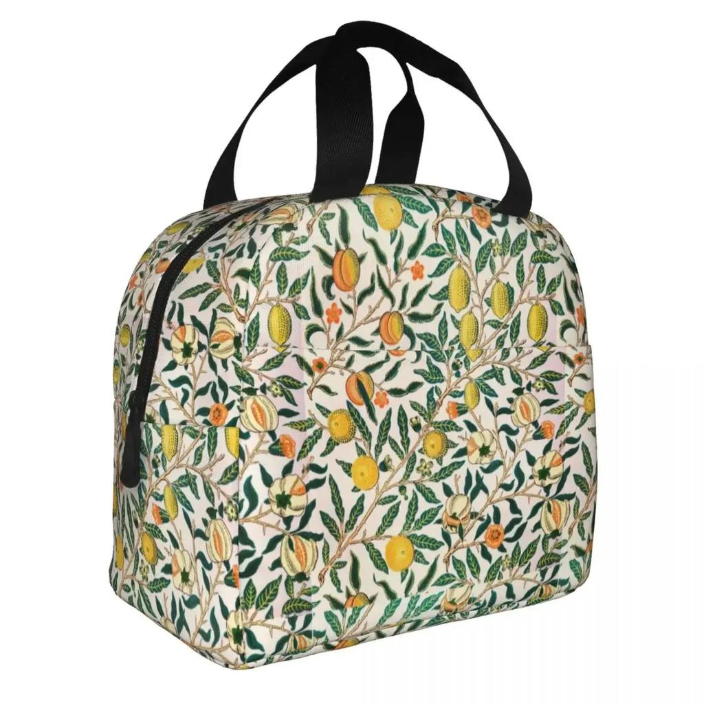 William Morris Fruits Insulated Lunch Bags Floral Green Plant Bohemian Flower Meal Container Cooler Bag Tote Lunch Box Food Bag