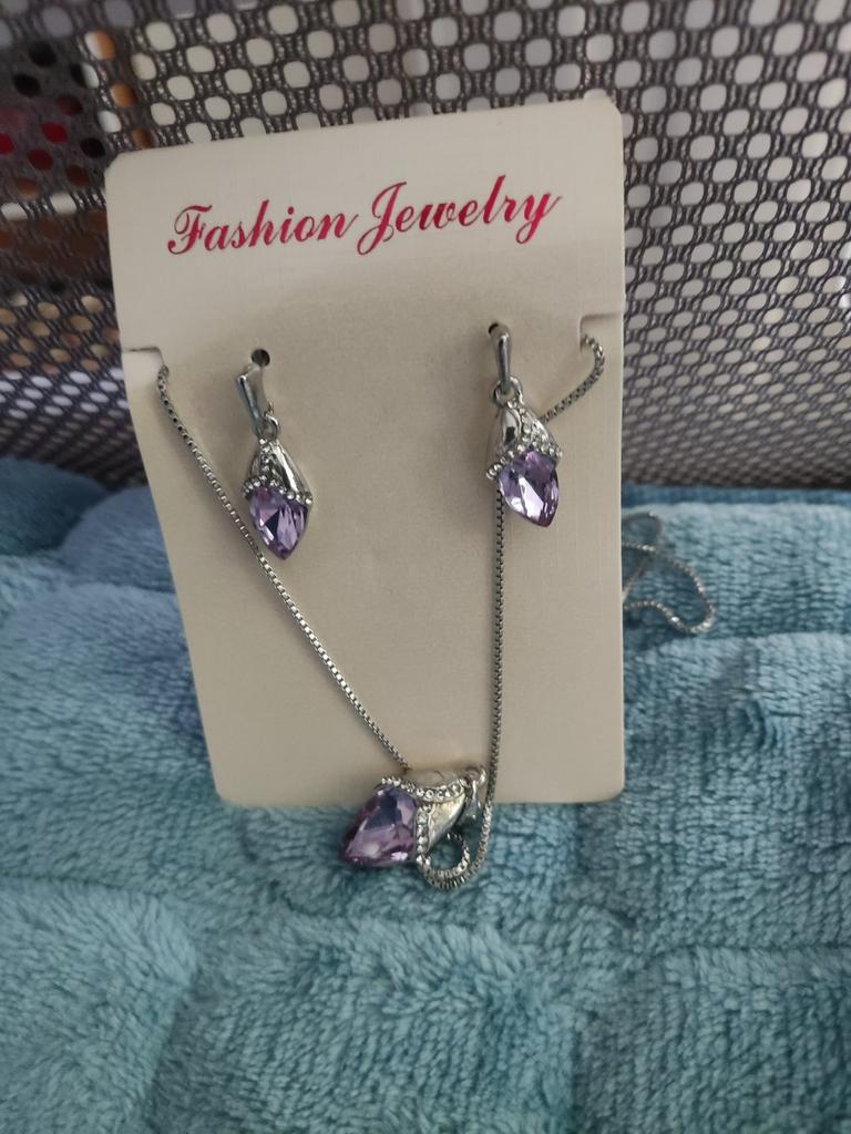 Rose Gold Floral Crystal Necklace & Earrings Set