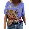 Fashion Spring Multicolored Print Blouses Short Sleeved V-Neck T Shirts Casual