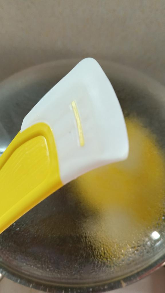silicone spatula โจ Silicone spatula for the kitchen for cleaning as a scraper. It can be used to remove grease from tiles or to clean the refrigerator and remove ice without risk of damaging it or making a mess.. It is quite flexible in the white part and the yellow part is rigid to be able to hold it firmly. It also has a hook for hanging it up. It arrived quickly in less than a month through a private transportation company.