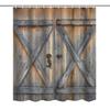 183*183cm Farmhouse Wooden Barn Door Style Shower Curtain Bathroom Curtain with Hooks