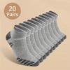 20 Pairs of Cool Men's Black and White Cotton Socks Set Men's Solid Color Breathable Sports Running Oversized Men's Socks