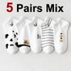 5/10/20 Pairs Women Animal Printed Short Socks Spring Summer Sweat Absorbing Breathable Comfortable Knitted Fabric Casual Socks