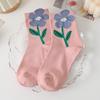 Cotton Women Socks Casual Breathable Japanese Korean Style Cartoon Flower Candy Color Female Middle Tube Sock