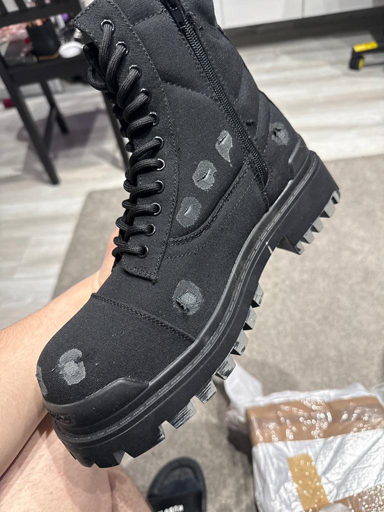 Autumn and Winter Heightening Men's Black Canvas Retro Big Boots, Broken and Old Martin Boots Tooling Boots, Snow Boots