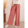 Spring Elastic Waist Casual Straight Leg Pants for Women's Loose Cotton and Linen Wide Leg Pants