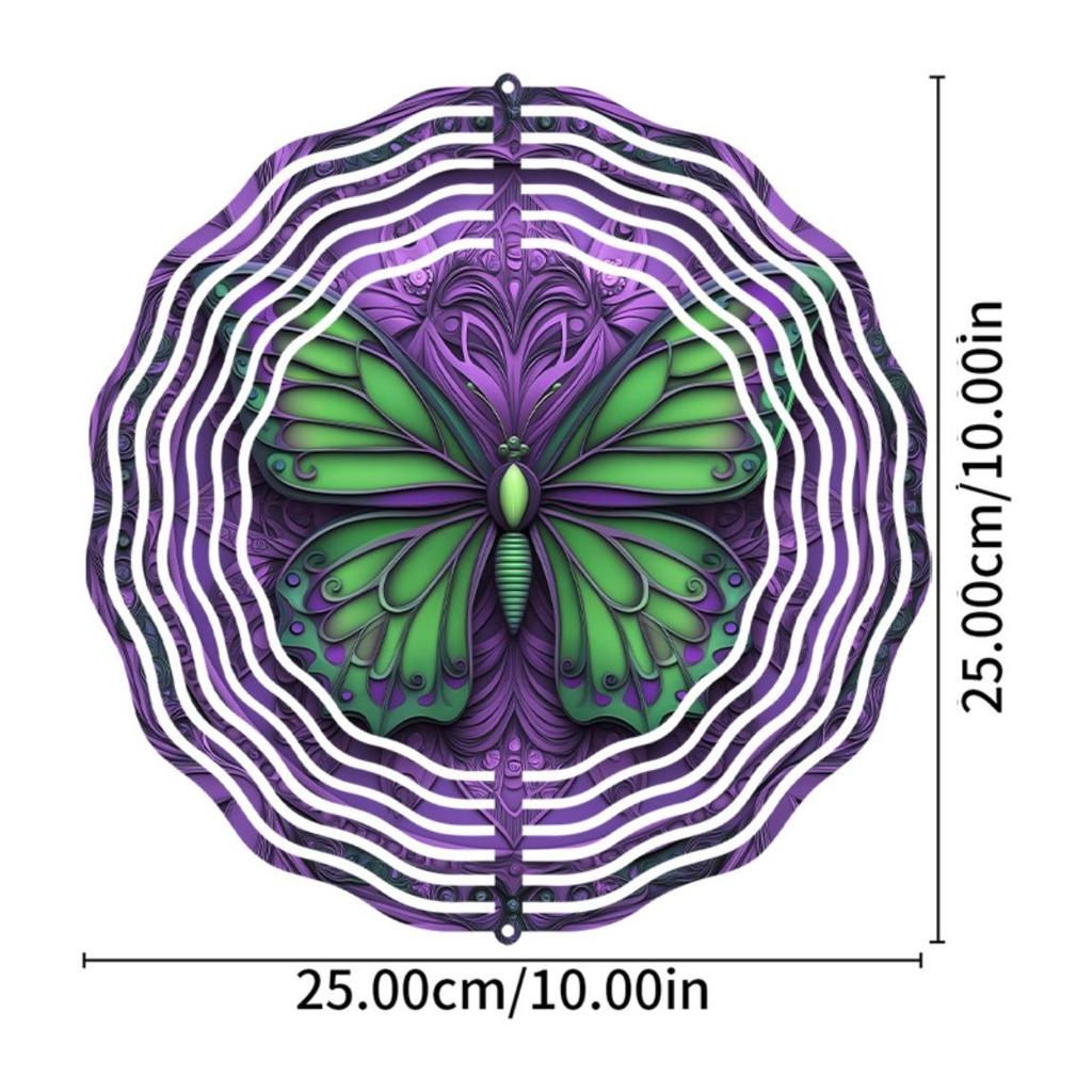 Vibrant 10 Inch Mandala Wind Chime with Swirling Butterflies Purple Green Metal Garden Decor Outdoor Art Gift for Family Friends