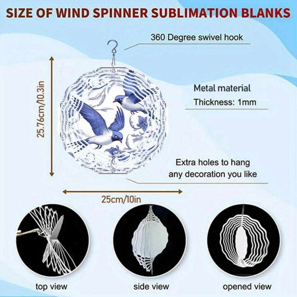 Hand Painted Blue Floral Swallow Wind Chime Outdoor Garden Patio Decor Weatherproof 2D Art with 360 Rotating Hook Holiday Decoration