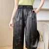 Summer Autumn Women Vintage Jacquard Flower Satin High Waist Wide Leg Pant Trouser With Pocket For Girls