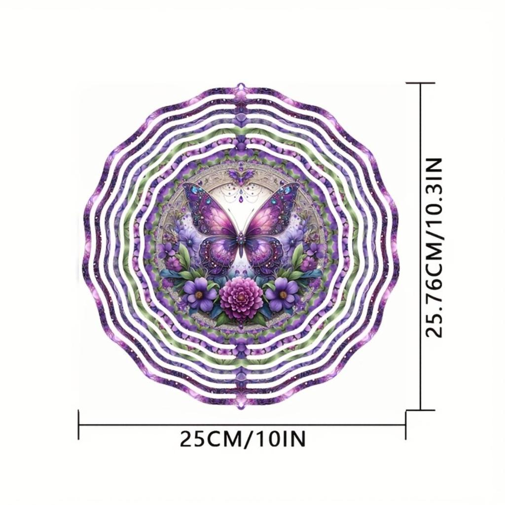 10-Inch Purple Butterfly Wind Spinner - 2D Laser-Cut Metal Garden Art with Geometric Design, 360° Rotating Hook for Indoor/Outdoor Decor