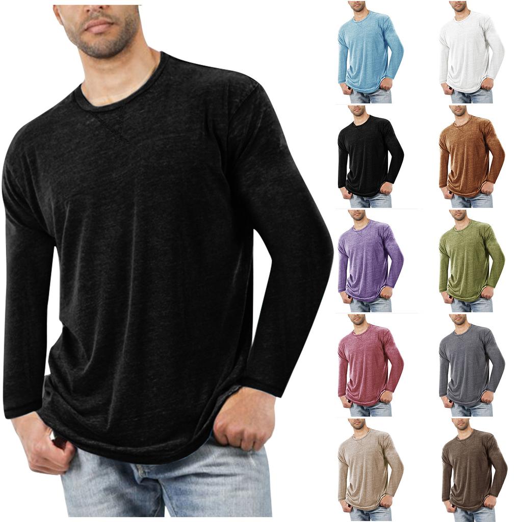 Solid Color Slim Top Men'S Casual Pullover Round Neck Long Sleeve T-Shirt