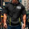 Men's Summer Shirt Print Zipper Pocket Short Sleeve Hooded Sweatshirt Men's Sports Large Size Casual Sweatshirt